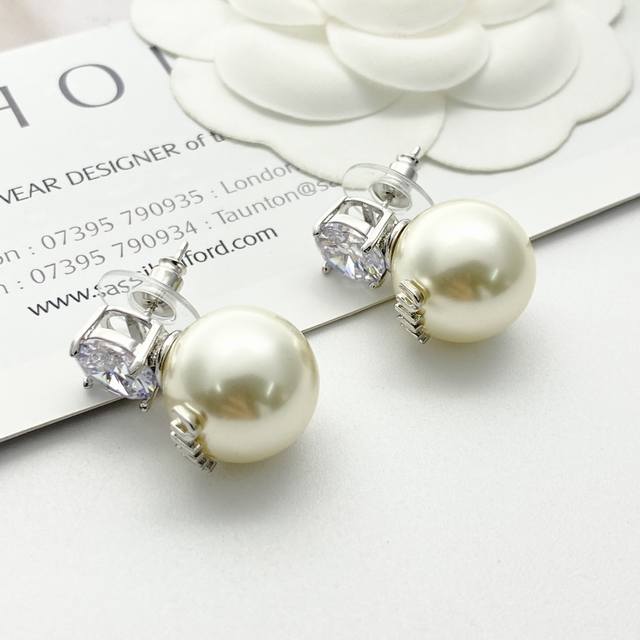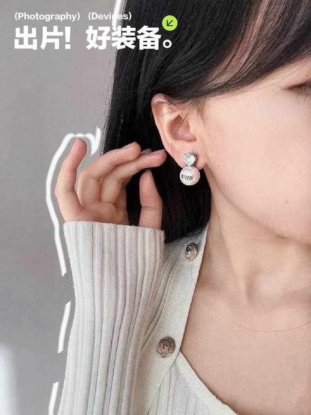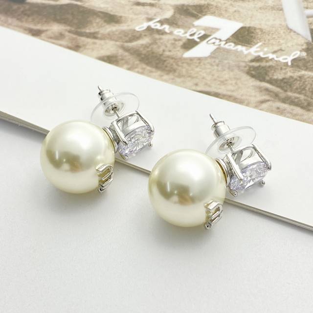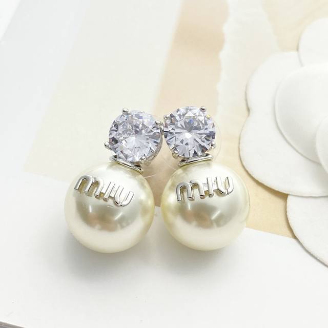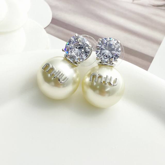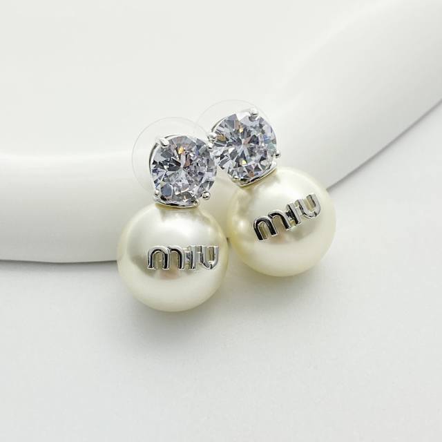 编码E2604 0247825 Miumiu耳钉热销款爆上新 Miumiu银色水钻字母珍珠耳钉,清爽简单经典大钻珍珠 精致感满满~优雅大方又贵气日常佩戴超好看!