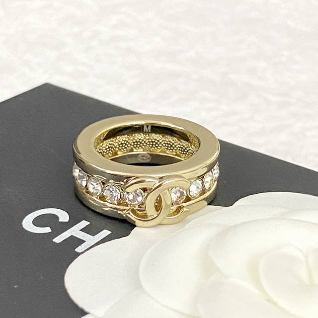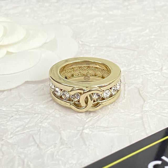 上面镶嵌着一圈闪亮的钻石,彰显出时尚与高贵的气息。戒面上有双C Logo镶嵌,为品牌标志或特殊寓意增添了神秘感。这枚戒指设计独特,闪耀夺目,无论是作为饰品还是爱情的见证,都将是无法替代的选择。♀试戴这枚戒指,让你的手指瞬间焕发出迷人的光彩。