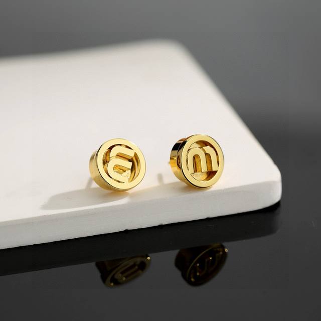 缪缪字母耳钉 经典金色系 小巧精致可爱 百搭 。复古造型设计 金色特别显白 穿衣搭配不挑人。