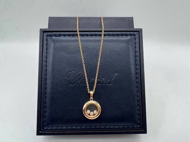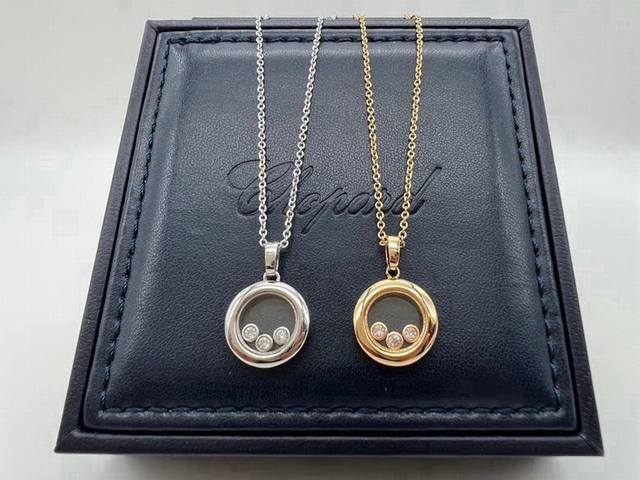 萧邦项链 成毅同款项链 圆形三钻跳动的心镶嵌5A级钻石项链 镶嵌灵动钻石 镀18K金工艺防不掉色 灵动吊坠项链 跳动的心项链可转动链长45Cm 白金色 玫瑰金。