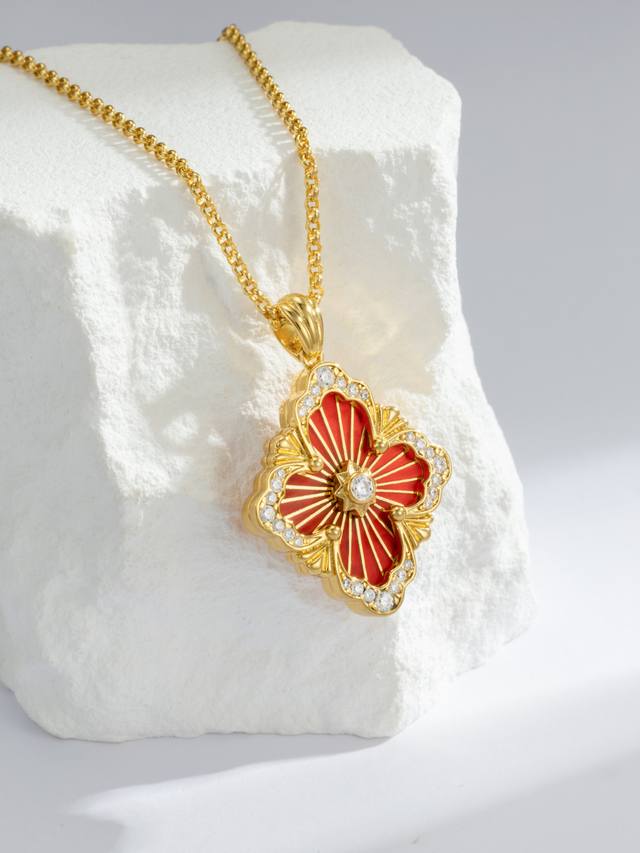 超受欢迎的布契拉提珐琅红色项链 大号款