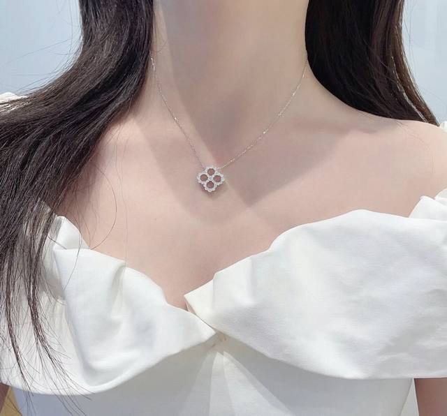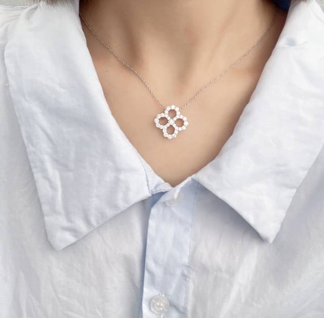 / 镂空版 Harry Winston海瑞温斯顿 经典四叶草满钻项链 超精工制作 原版一致 各大明星同款 美腻了 奢华大气上档次 亚金材质 电镀18K金色!美翻了