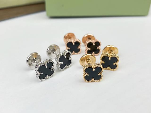 飞碟耳堵P30 Vca梵克雅宝小号四叶草耳钉 1.0Cm迷你四叶草 Buling Buling~搭配925银针~防过敏完美演绎高档品质 亚金电镀18K玫瑰金 黄金 白金--实拍精工版本饱满的花型配搭黑玛瑙 白贝母 红玛瑙 孔雀石优雅首选 耳钉 原版飞碟耳堵