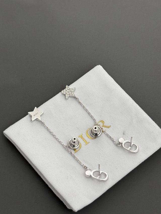 高品质 细节如图 清冷银色 Cd星星流苏耳钉 经典简约清新款,非常适合现在的季节,光面Cd+星星满钻吊坠+一颗Silver Shadow施华洛水晶点缀,使得整体