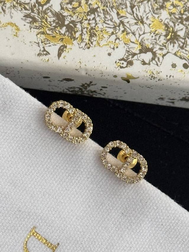 高品质 细节如图 迷你Cd金色 钻耳钉 Ciair D Lune 18年秋冬新款 经典永不过时,高端品质 经得起对比市场任何Low版!黄铜材质+施华洛钻石 白富