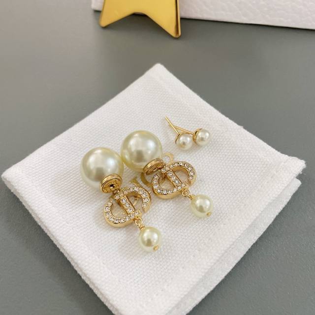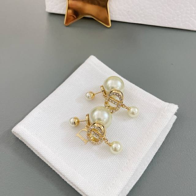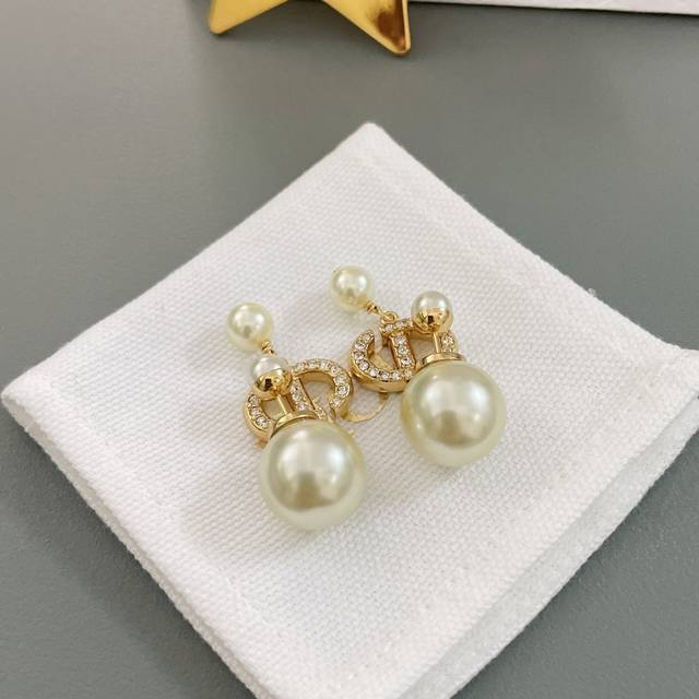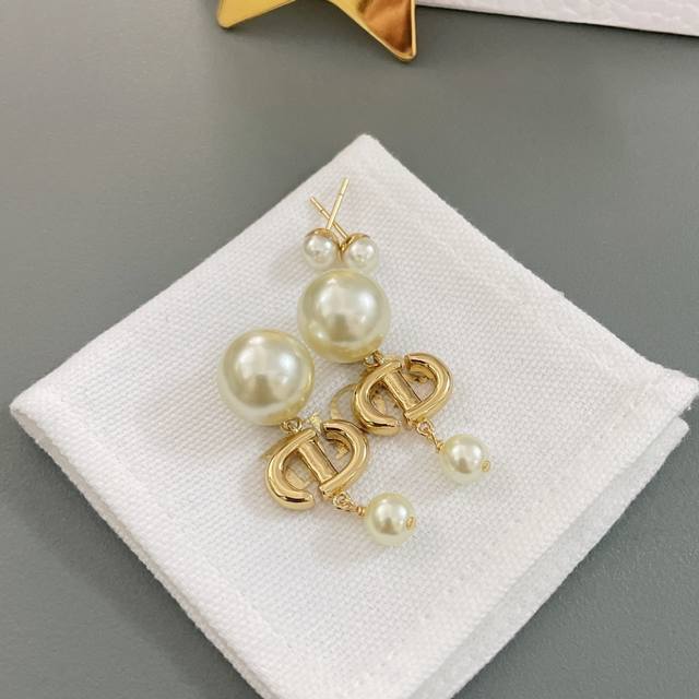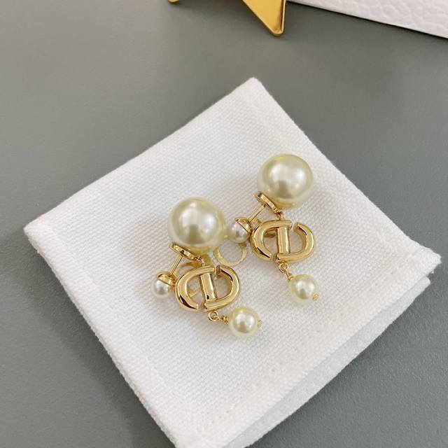 高品质 细节如图 Dcd吊珠耳钉 简约斯文气质款,经典Cd+施华洛珍珠,钻均为银色魅影施华洛,这款相对而言比较日常化,四季常青通戴,好搭配,上耳十分活泼灵动!