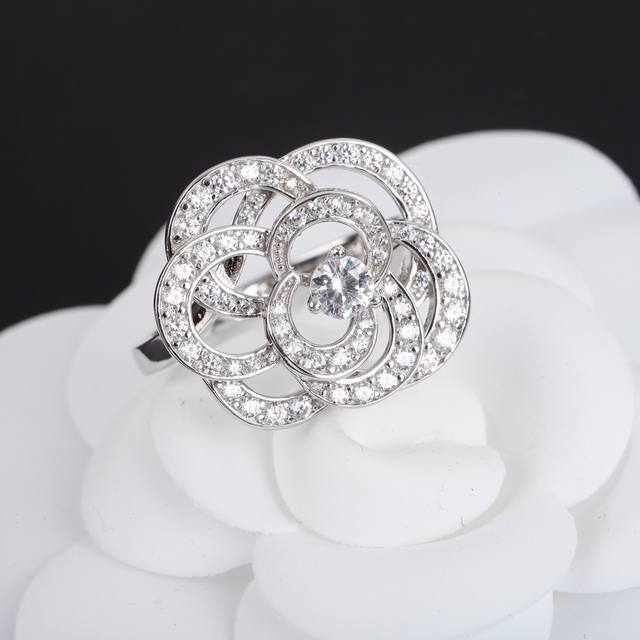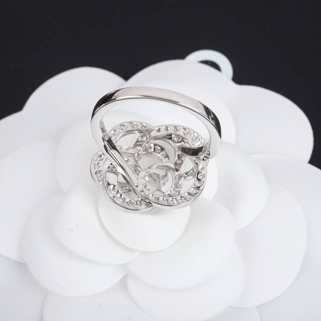 山茶花戒指petales De Camelia山茶花系推出了这款满钻戒指,该系列只运用了18K金与钻石的简单搭配,镂空的花瓣设计呈现山茶花的造型,线条镂空感让整体设计更加简约、灵动、轻盈,中心钻石的点缀让设计有了低调的贵重感,尤其这款戒指,开在指尖,优雅至极
