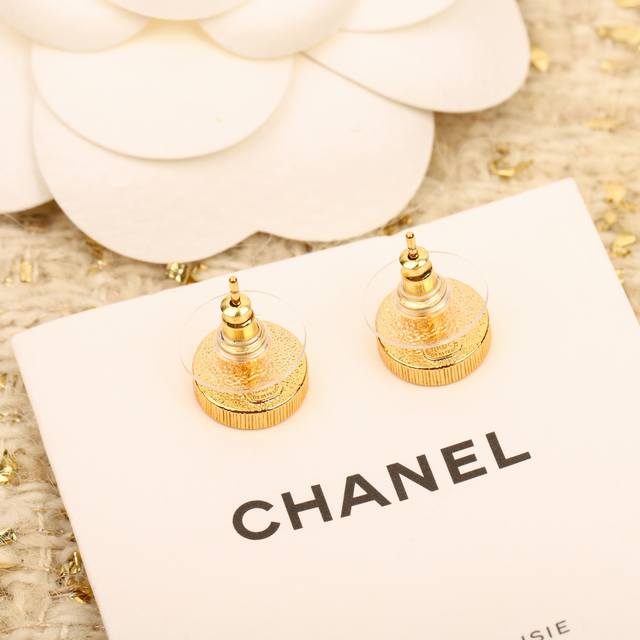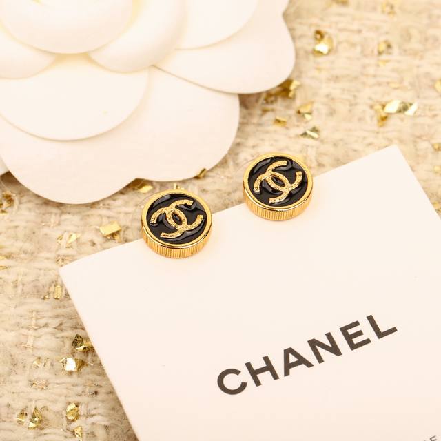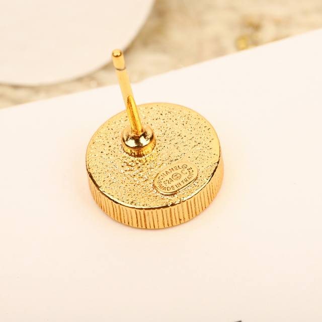 Ch Nel24C小圆滴胶耳环 十分有设计感双C玛瑙, 太美了!一眼就爱上的系列非常有Vintage的味道,这款绝对是自带神仙颜值的好不非常重工!整副耳环拉丝纹路跟底部的纹路均为不规则的,全部老师傅纯手工手绘拉丝而成,宝们,自己看图感受上耳复古又精致,让日常穿搭亮点,也可以Hold住大场面,简直不要太好看了