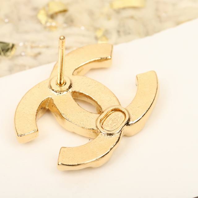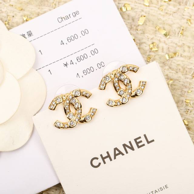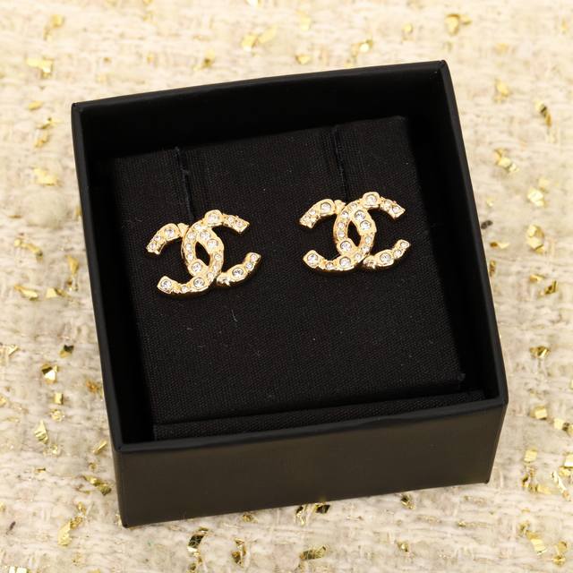 Ch Nel 24S大小水钻双C耳钉 每期必入的经典双C耳钉,一致Zp黄铜材质施华洛水钻光,上耳简约大气,超级百搭,经典永不过时香粉必入[机智]