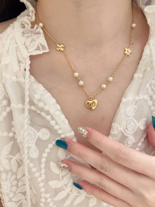 Dor珍珠星星四叶草爱心Cd项链 25春夏最新系列我真的沦陷在这个季度里了~太太太美了爱不释手,每一款上身都特别的好看,看到就特别喜欢四叶草+五角星爱心Cd,上边大小珍珠错位点缀,上耳好温柔好仙,超美强烈推荐