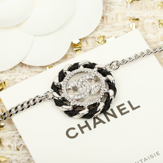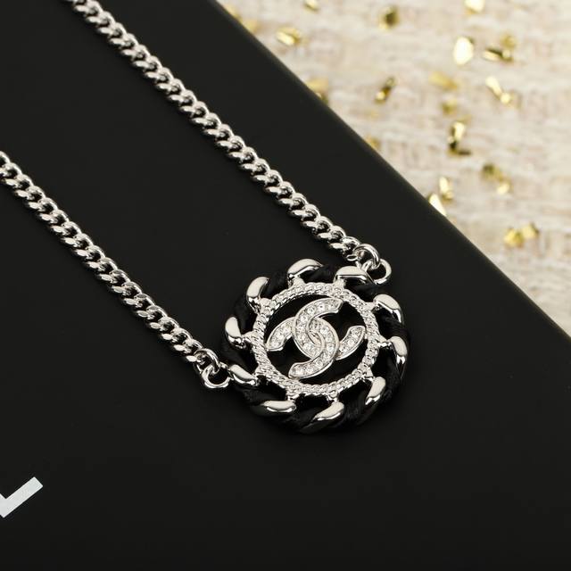 香 黑色圆形穿皮项链 26C早春最新款,全网首发纯手工穿皮+满钻双C,五金链条纯手工抛光,非常光滑细腻!从细节去体现整体的完美气质!戴上就不想摘下来了上身酷甜又时尚!经典元素永不过时,四季通勤款必备