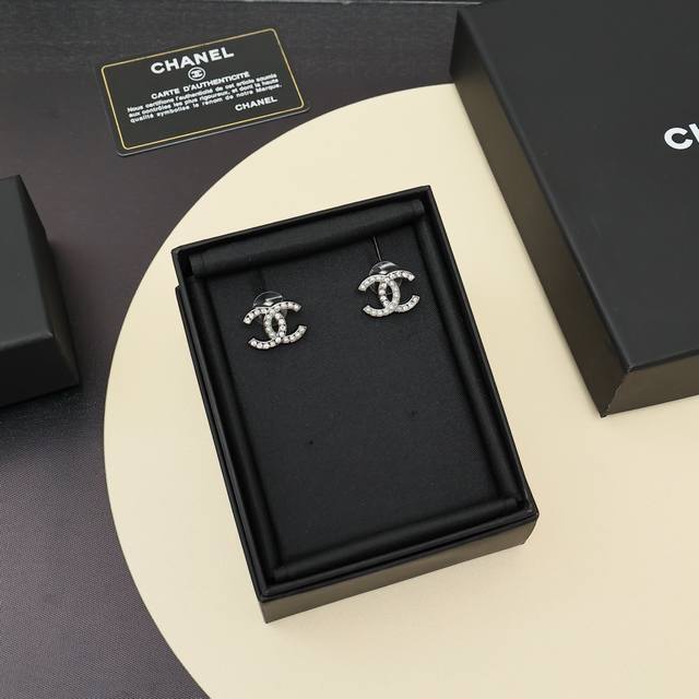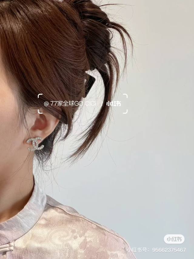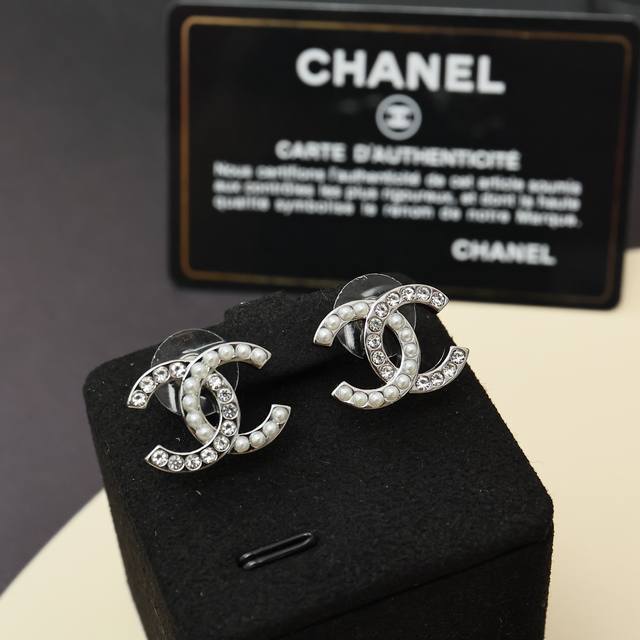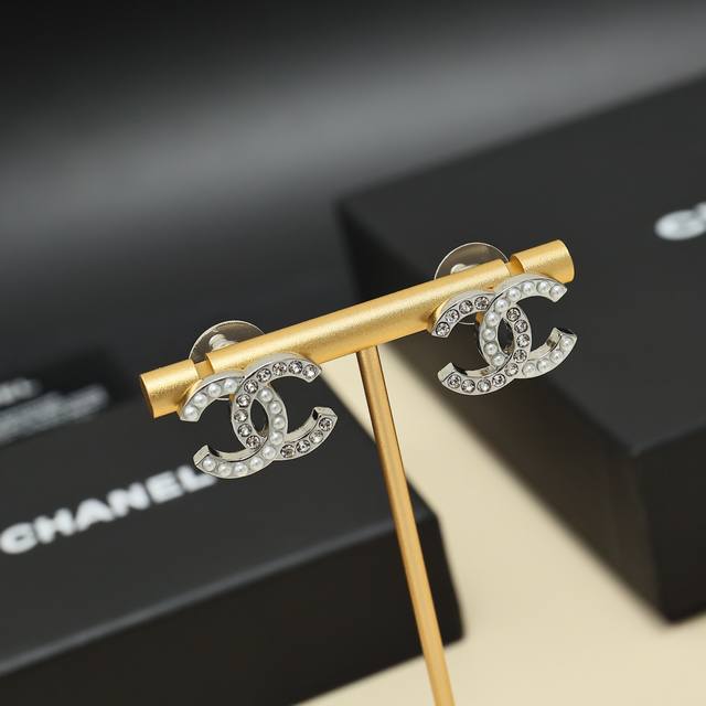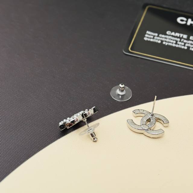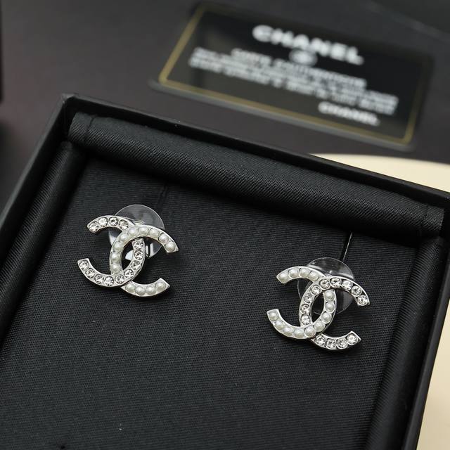 / 25B珍珠拼钻银色双C耳钉 以银色为主色调 日常超百搭不挑人 氛围感全靠它了日常佩戴超级百搭