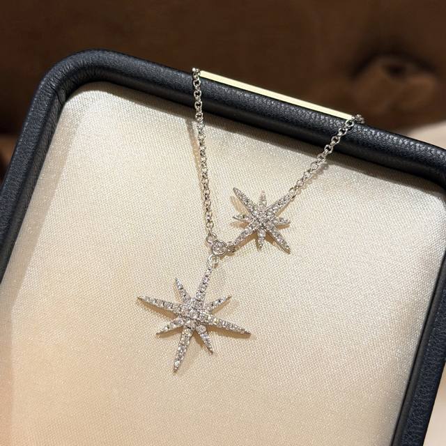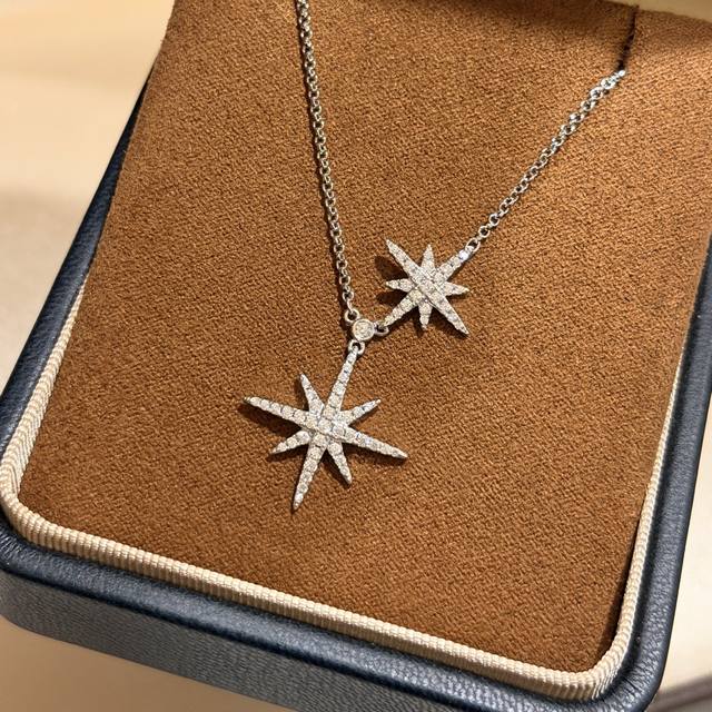 / A3364 Monaco 流星系列 大小 双米字 星星项链 锁骨链 毛衣链 吊坠银颈链简约 小红书上最火爆的一款 上身超美的 精选原版进口S925纯银材质电镀厚
