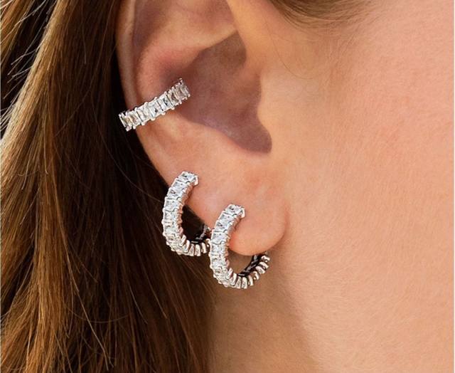A4258 大牌 格拉夫 新品 满钻 方钻 耳拍 高端定制 S925通体纯银镶嵌进口仿真钻 奢华明星款女神专属 高逼格 高质量超闪 上耳效果超美 超级Bling