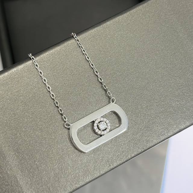 A4262 梅西卡 新款 大号 单钻 滑动项链 高端 S925纯银 K金工艺 媲美正品正品真金真钻,我们采用德国独家进口抛光技术 镶嵌5A钻 铂金色 电镀厚金 纯银项链