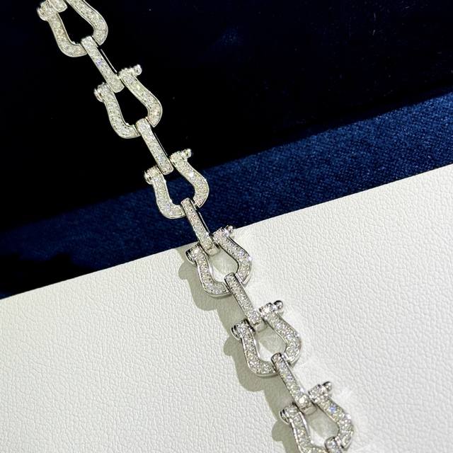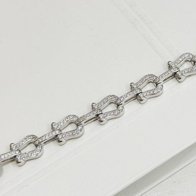 / A4402 费雷德 满钻 重工 马蹄扣 手链 大牌 时尚 精致 Force 系列手链 高端定制通体 925纯银 加厚 电镀18K金工艺 精工微镶 满钻扣头 网红