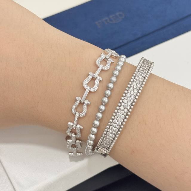 A4402 费雷德 满钻 重工 马蹄扣 手链 大牌 时尚 精致 Force 系列手链 高端定制通体 925纯银 加厚 电镀18K金工艺 精工微镶 满钻扣头 网红