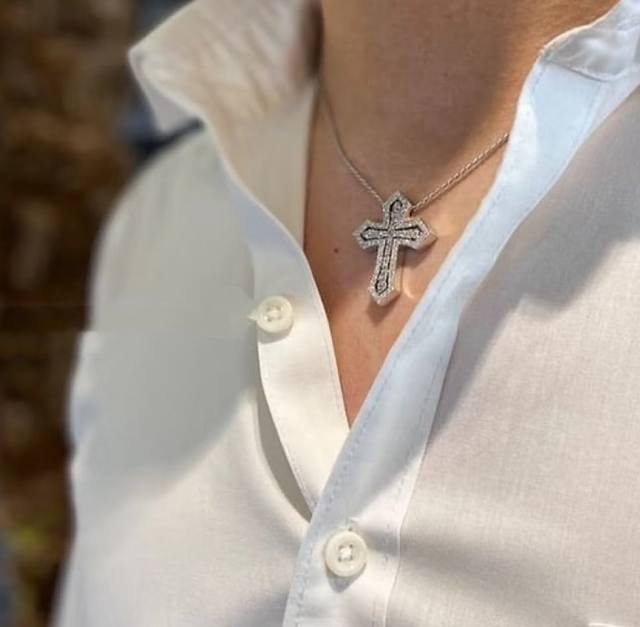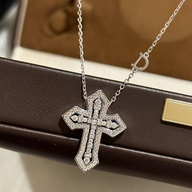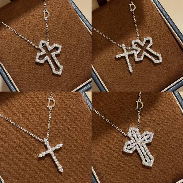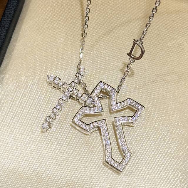 / A5833 欧美大牌新款 双层十字架 多变化项链满钻镶嵌 多种戴法爆闪精致设计感两个十字架可以交换位置 多样化 国外爆款Ins风 人手必备的十字架 通体纯银 5