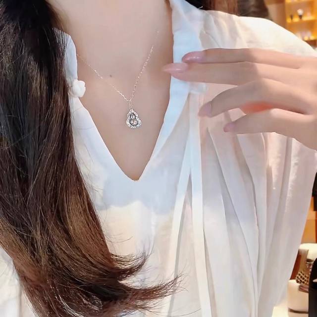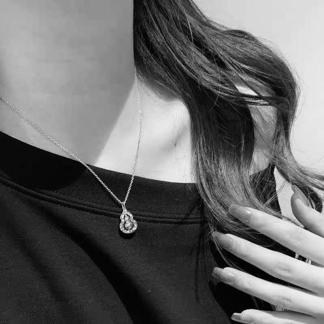/ A5878 火爆全网 爆款 碎冰冰 双葫芦 转动项链 葫芦自古就有“福禄吉祥”的寓意 高端 925银精工 镶嵌5A高碳钻 修饰脸型,很气质,超级推荐 质感十足
