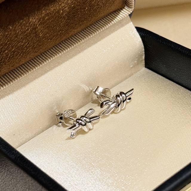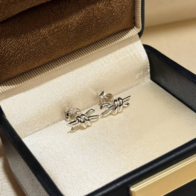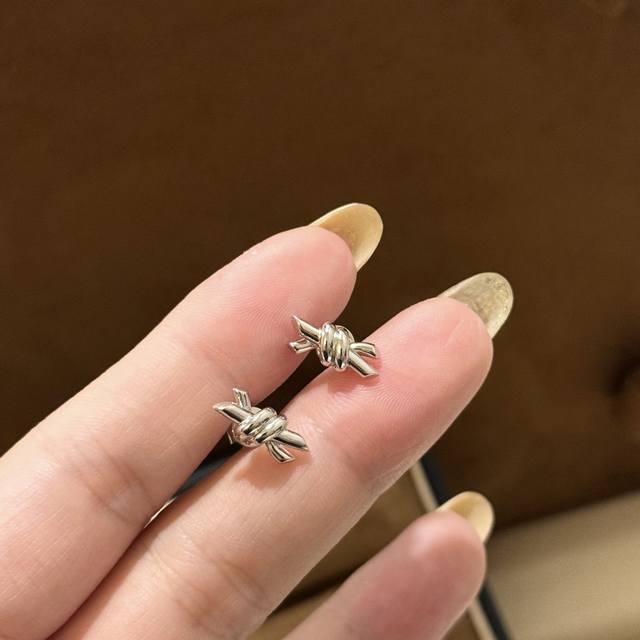 / A6397 T家新款 缘系列 光面 打结 耳环 高端定制S925纯银材质 以时尚别致缠绕绳结象征两人之前的特有连结 永恒不变 铂金色 纯银耳钉 DDD