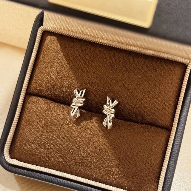 A6397 T家新款 缘系列 光面 打结 耳环 高端定制S925纯银材质 以时尚别致缠绕绳结象征两人之前的特有连结 永恒不变 铂金色 纯银耳钉 DDD