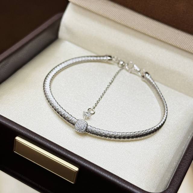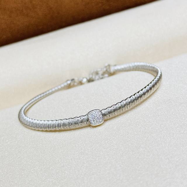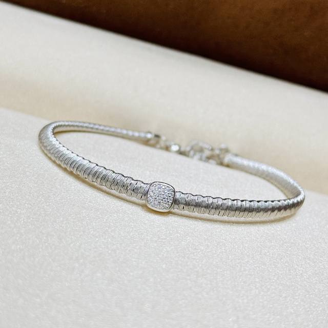 / A6619 猛吹的Ins风~又飒又酷的金属+钻石组合 弹簧 方形 手链 年轻时尚又兼具着珠宝感。这种风格从国外吹向国内,在真金真钻定制的圈子里爆火了起来相信不少