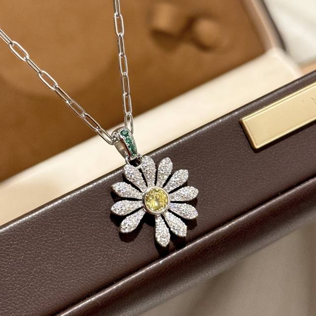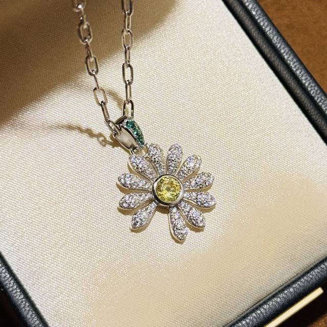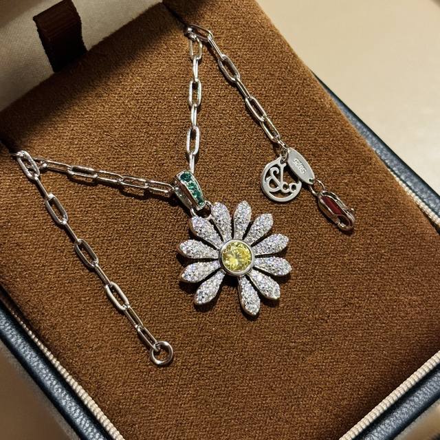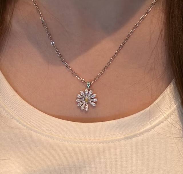 A6643 权志龙同款 爆款 中古系列Vintage 小雏菊 黄钻 满钻 缺口 项链 复古浪漫每一次佩戴,都是一次与时光的对话。耳钉上的小雏菊,精致而生动,仿佛正在悄然绽放。每一片花瓣都经过精心雕刻,流露出复古的气息,让人仿佛穿越到了那个充满诗意的年代 电镀厚金 纯银项链