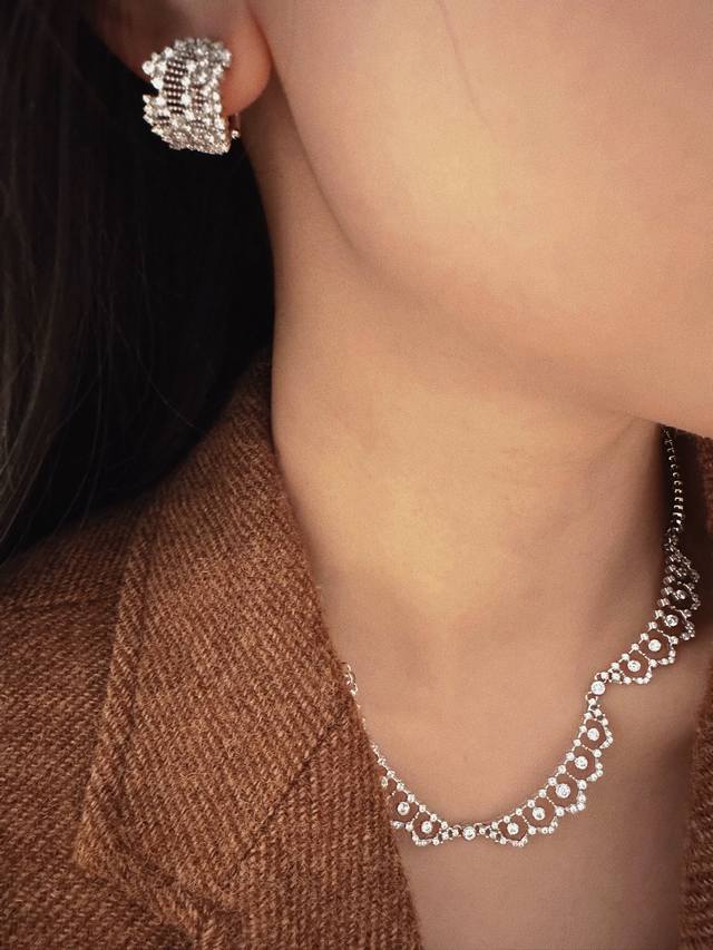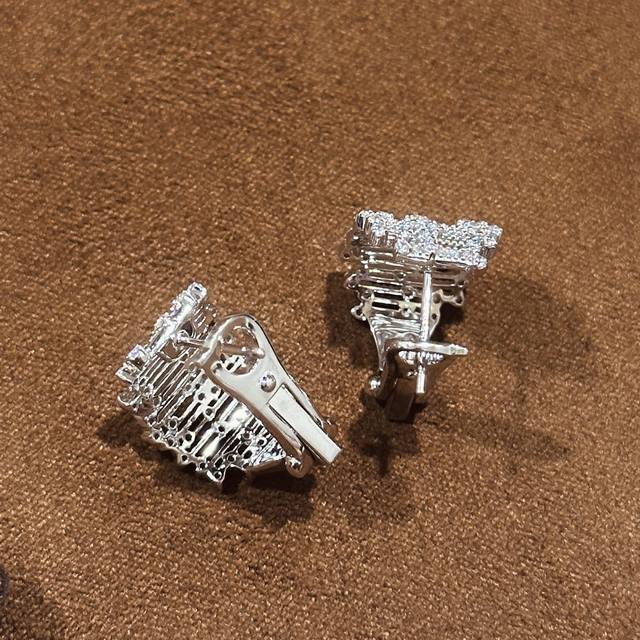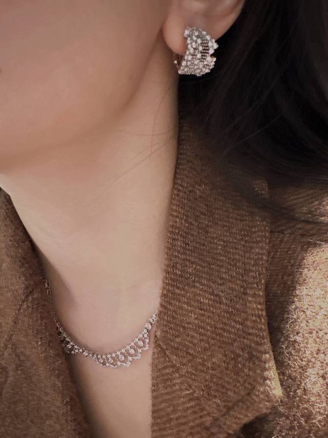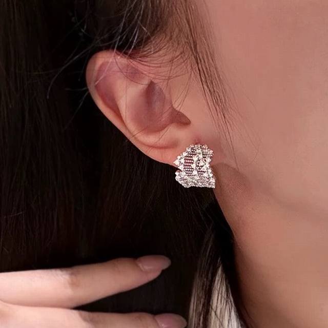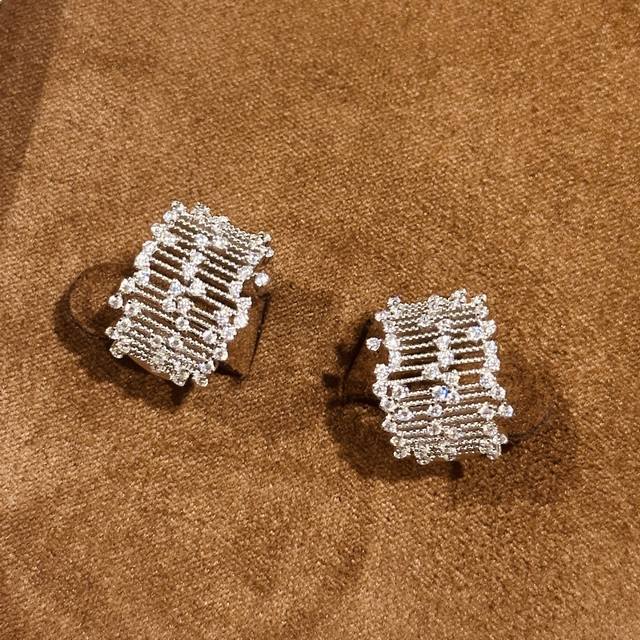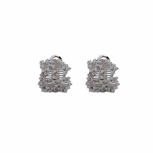 / A6658 独立设计师 中古风 繁星点钻 蕾丝 耳钉 女新款高级感潮流个性 满天星花丝 轻奢手工拉丝蕾丝交叉藤蔓镂空镶钻 不掉色闪钻 通体S925纯银材质 电镀