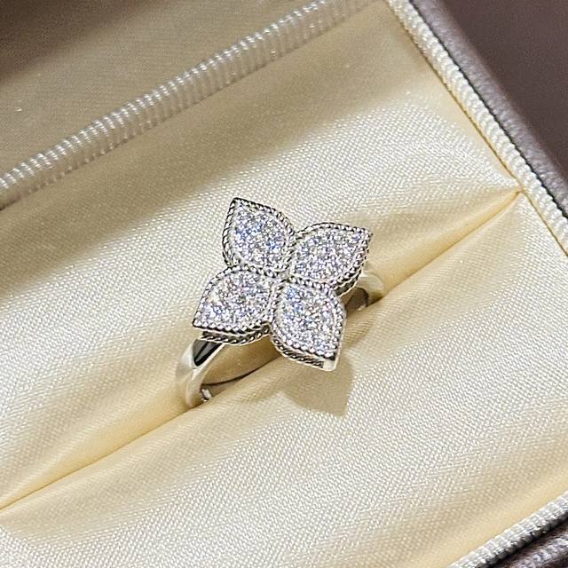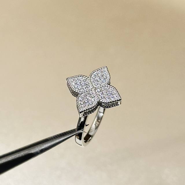 A6764 新款 布契风 镂空 四叶草 满钻 麻花边戒指 高端S925材质 华丽设计 这种设计也只有大牌才能体现得淋漓尽致 精致永恒值得你拥有铂金 电镀厚金 678码齐 纯银戒指