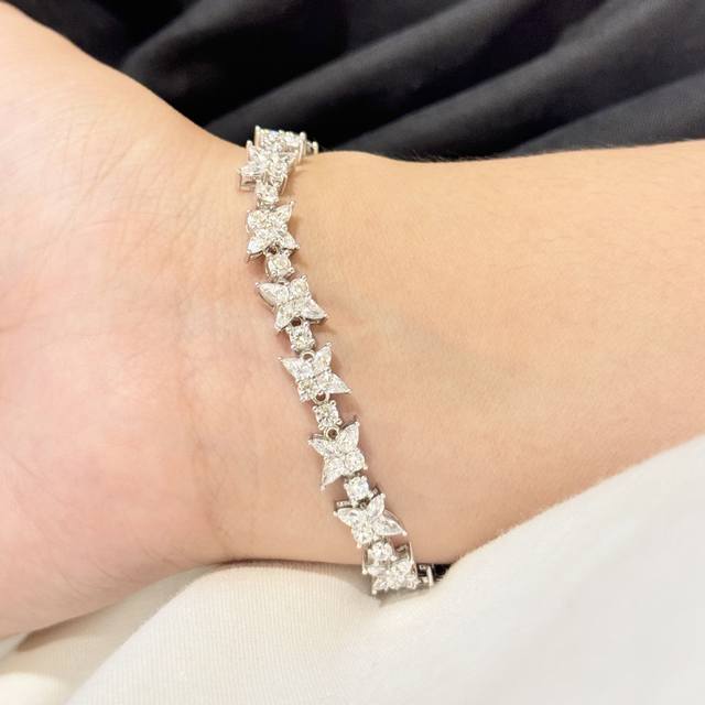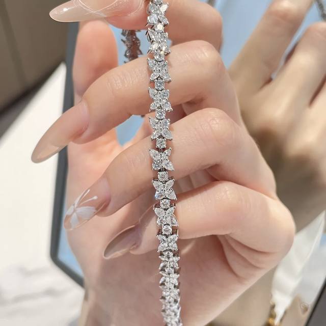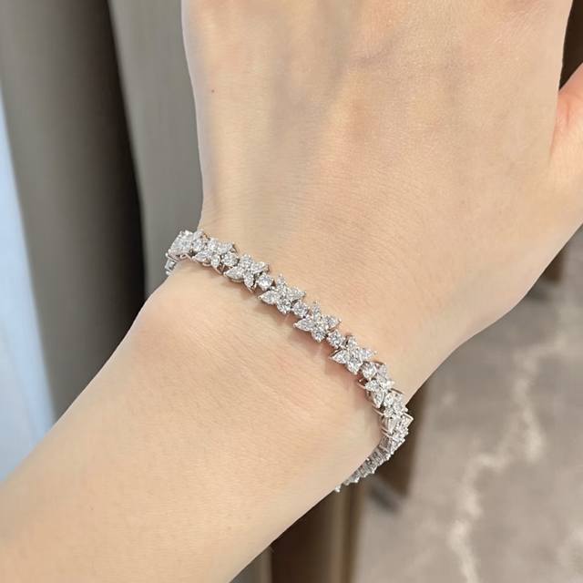 / A6796 T家 新款 花簇 水滴 手链 采用5A高碳钻 顶级S925材质镶嵌 铂金镶钻设计 绝对精工细造 优雅 大方 电镀厚金 纯银手链