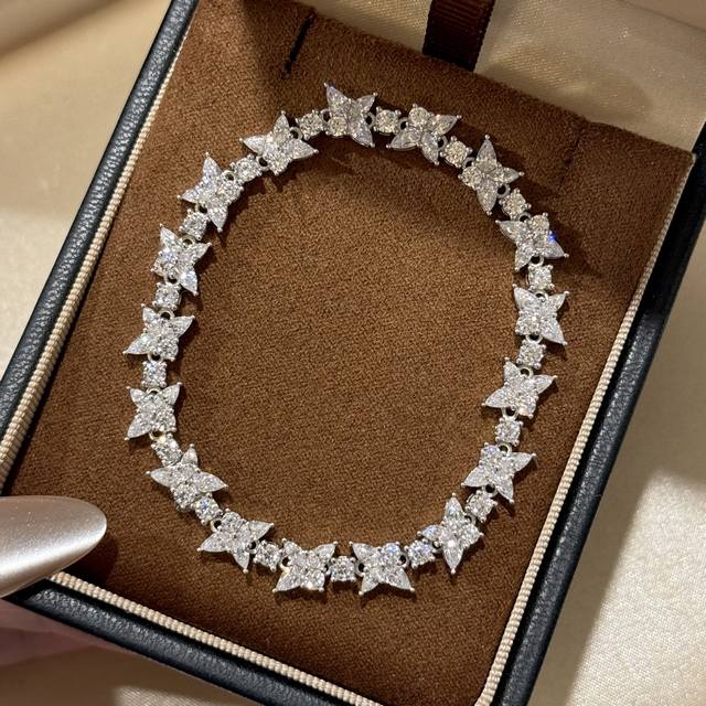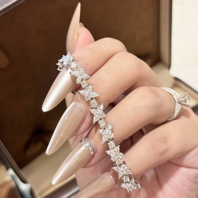 A6796 T家 新款 花簇 水滴 手链 采用5A高碳钻 顶级S925材质镶嵌 铂金镶钻设计 绝对精工细造 优雅 大方 电镀厚金 纯银手链