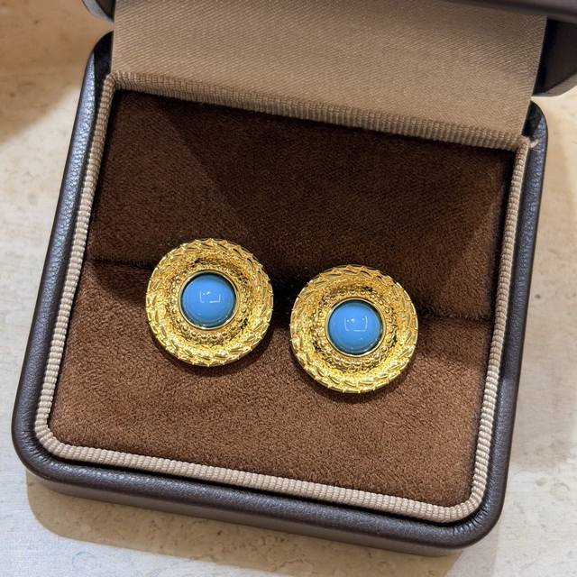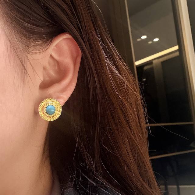 A7164 独立设计师款 今夏最火爆的“网红”蓝 蓝松石 太阳花 黄金耳钉 新品出不停~ 通体925纯银镶嵌工艺 质感和保色都是一流! 高端定制 天然材质稀贵 因为它的颜色充满治愈系 今年也受到珠宝爱好者的宠爱 它独特的颜色复古又明亮 来自美国亚利桑那州的睡美人 矿绿松石呀黄金电镀厚金 纯银耳钉