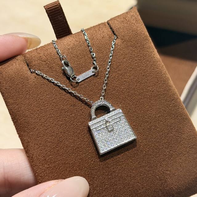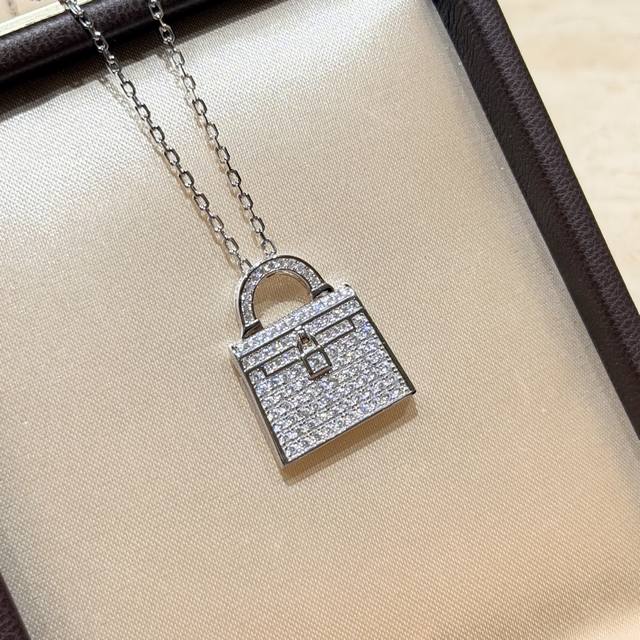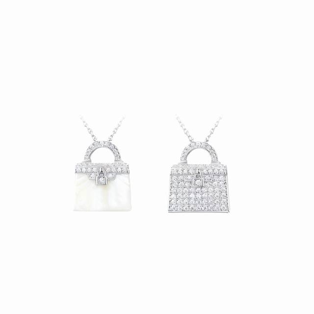 A7312 火爆新款 凯利包包 白贝母 双面项链 高端定制 顶级925纯银镀咪金 自购K金开模,老师傅K金工艺 好别致!实心包包各种细节 电镀厚金 铂金色 双面可佩戴 纯银项链