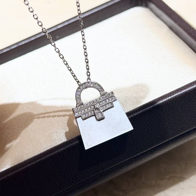 A7312 火爆新款 凯利包包 白贝母 双面项链 高端定制 顶级925纯银镀咪金 自购K金开模,老师傅K金工艺 好别致!实心包包各种细节 电镀厚金 铂金色 双面