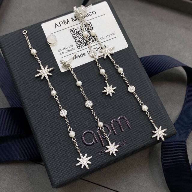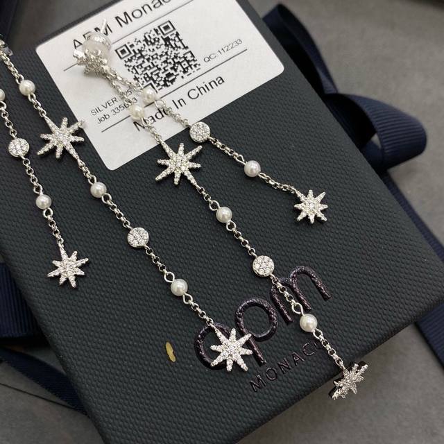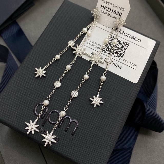 Apm Monaco六芒星珍珠耳坠耳钉 垂坠珍珠与流星链式耳环,产品亮点标志性流星划回归 散发经典永恒的魅力,标志性流星搭配淡水珍珠以细节散发女性柔美。长款流苏