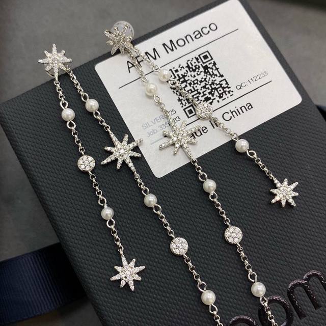 Apm Monaco六芒星珍珠耳坠耳钉 垂坠珍珠与流星链式耳环,产品亮点标志性流星划回归 散发经典永恒的魅力,标志性流星搭配淡水珍珠以细节散发女性柔美。长款流苏设计在行动间为造型注入动感,大气银白色色泽让肌肤更显白。