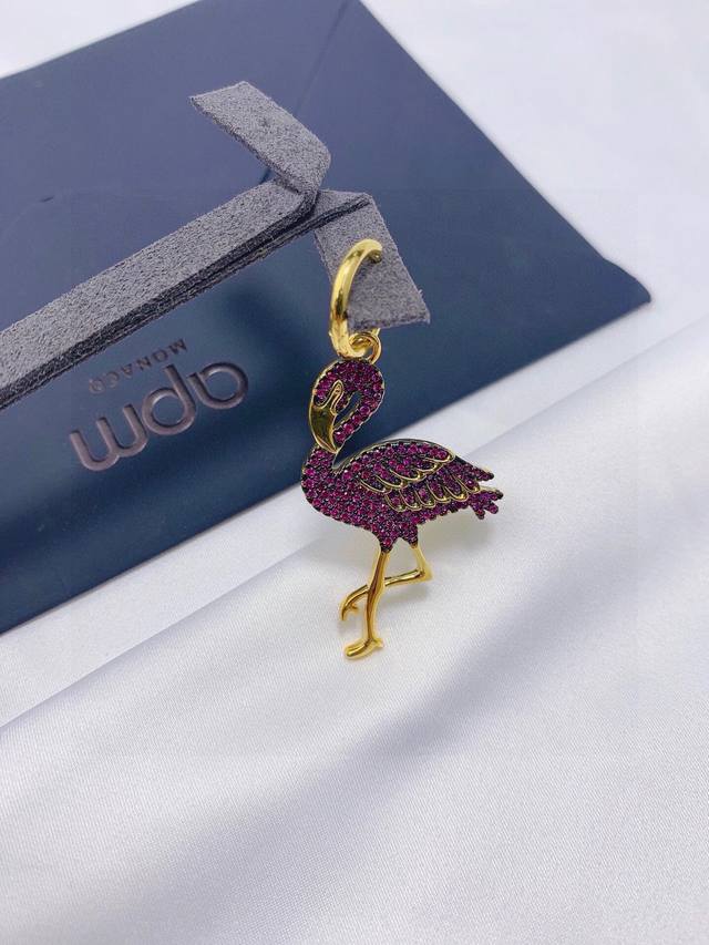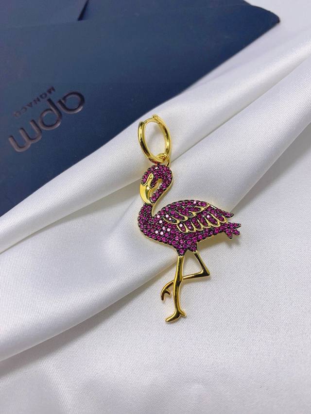 Apm Monaco 热带玫红钻火烈鸟耳环单只!以缤纷炫彩的设计诠释热带风情,色彩斑斓的钻耀目初夏,打造抢眼的时尚风格。
