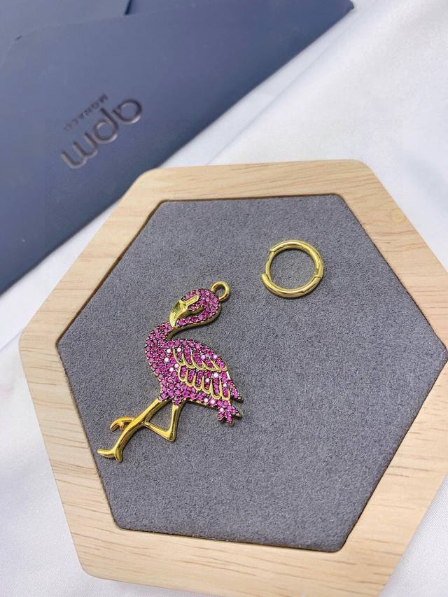 / Apm Monaco 热带玫红钻火烈鸟耳环单只!以缤纷炫彩的设计诠释热带风情,色彩斑斓的钻耀目初夏,打造抢眼的时尚风格。