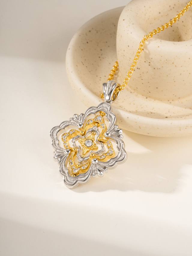 O批Era 系列以复杂对称的四瓣花图案为设计元素,灵感来自文艺复兴时期的意大利建筑 例如罗马 四泉圣嘉禄堂 的十字形穹顶、布斯卡 Roccolo 城堡 的窗框、威尼斯 总督宫 的廊柱装饰。
