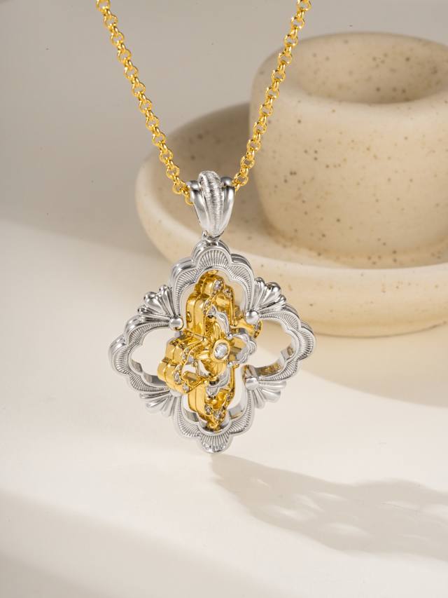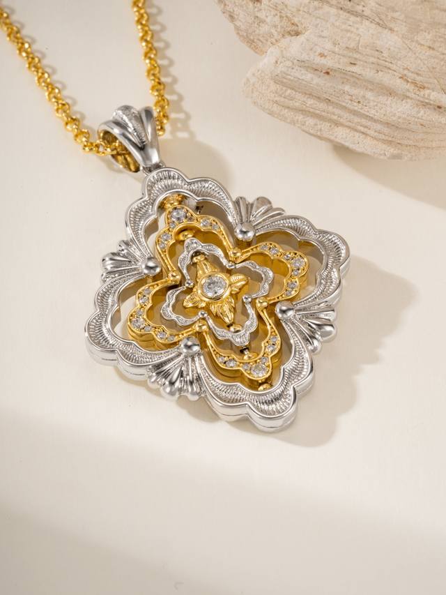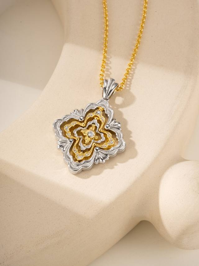 Buccellati旋转四瓣花超大号项链 链条黄金色