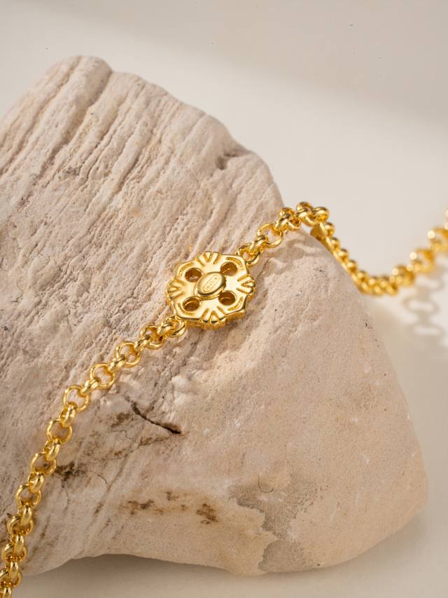 灵感来源:来自宇宙中旋转的天体。新作延续复古对称的四瓣花图案为设计元素,最大亮点是中央花瓣会沿着中轴自如转动,有如一枚幸运灵动的护身符。