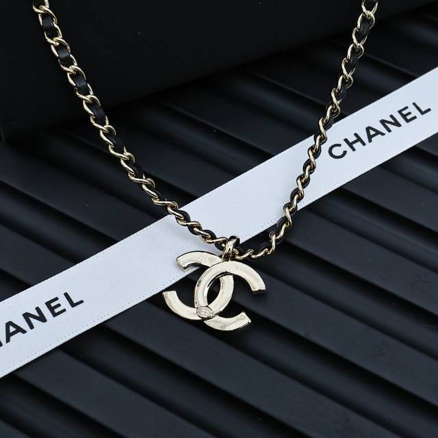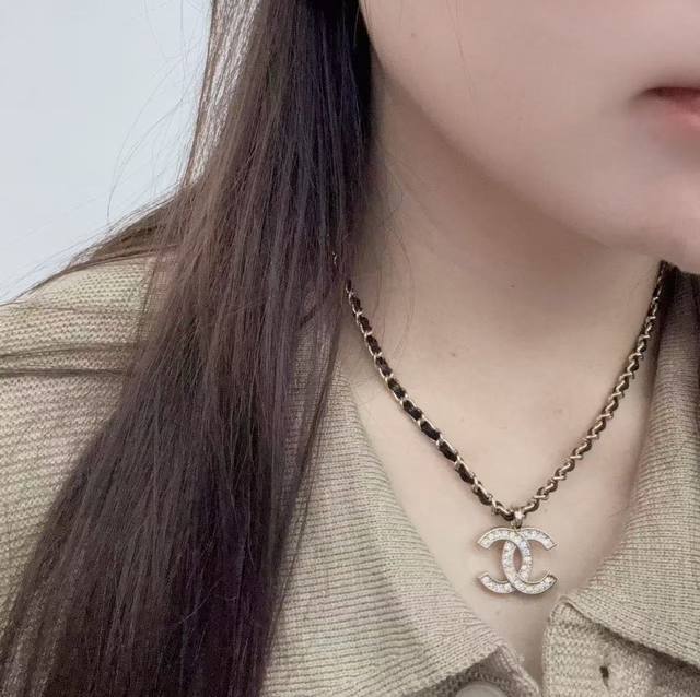 / Ch Nel黑金皮穿双C项链 高级百搭单品 休闲带点小复古 上身精致百搭 双Clogo非常有辨识度 上身太吸睛啦