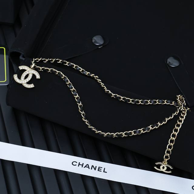 Ch Nel黑金皮穿双C项链 高级百搭单品 休闲带点小复古 上身精致百搭 双Clogo非常有辨识度 上身太吸睛啦