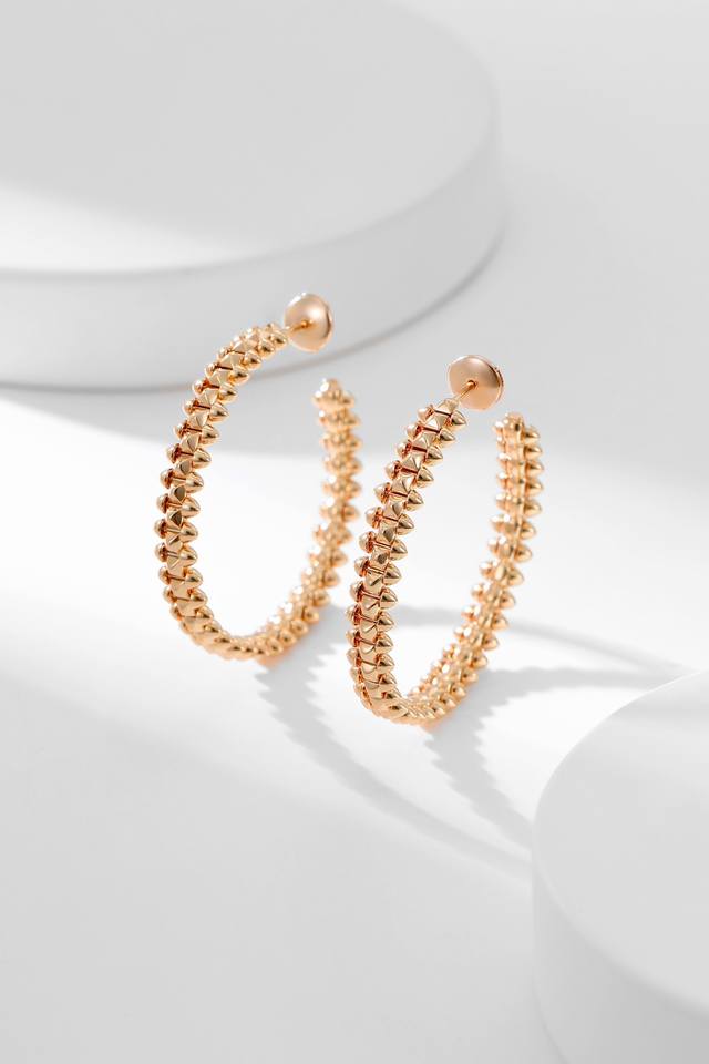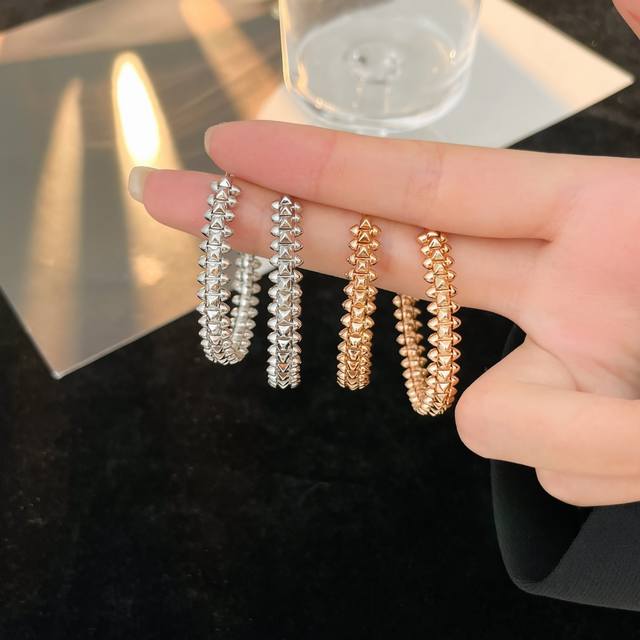 Clash系列大号耳环,在造型上力求古典,却又主张超越经典,线条简约却又魅力四射,在与生俱来的结构匀称感中展现大胆奔放的姿态;在充满几何尖峰线条的纯粹之中感觉关