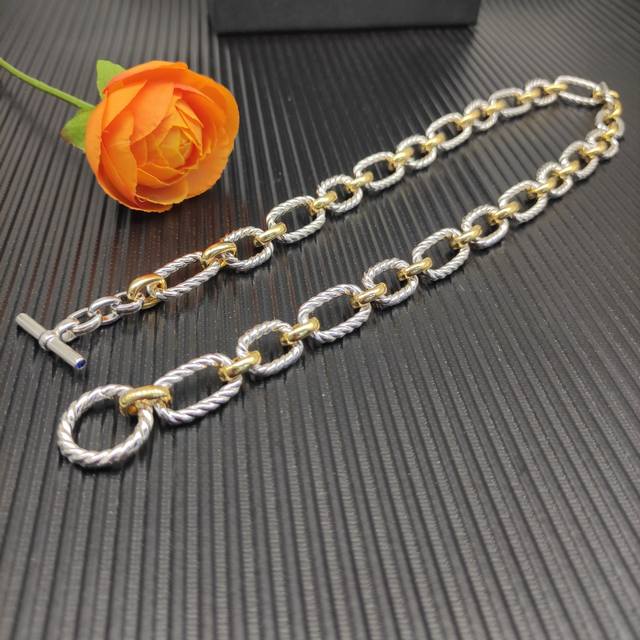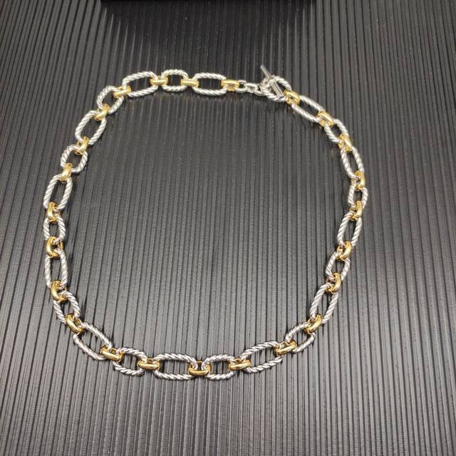David Yurman 纽线蓝宝石项链。金银分色 长度50Cm