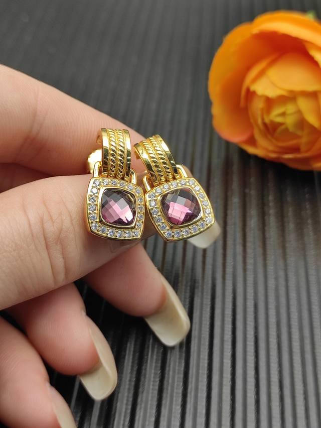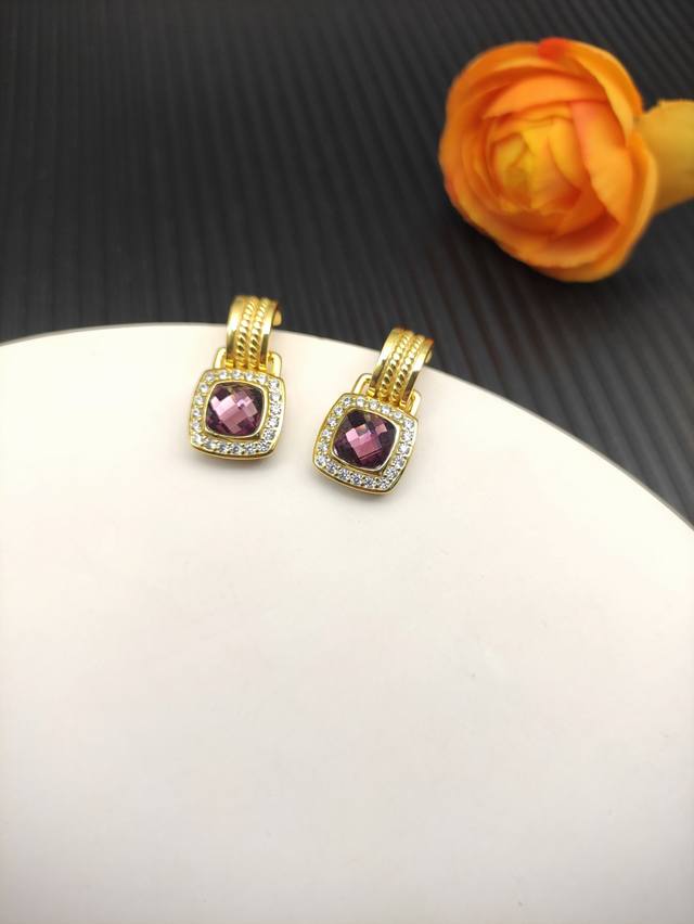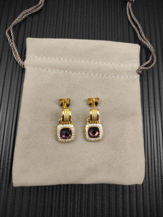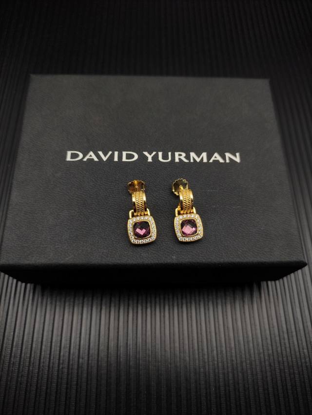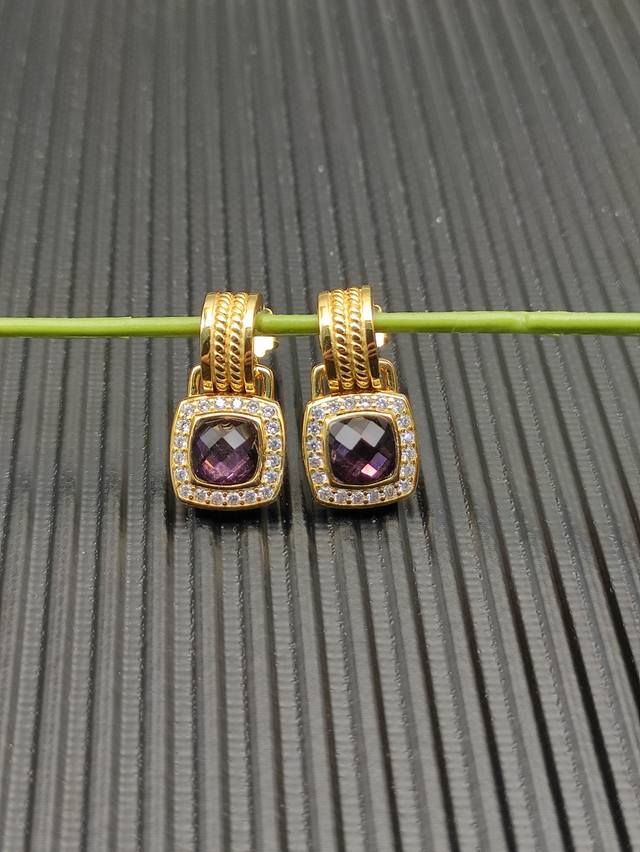 / david Yurman 金色紫钻四方钻纽线分件耳环 。¥ 编号Dyeh-171