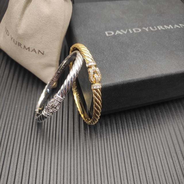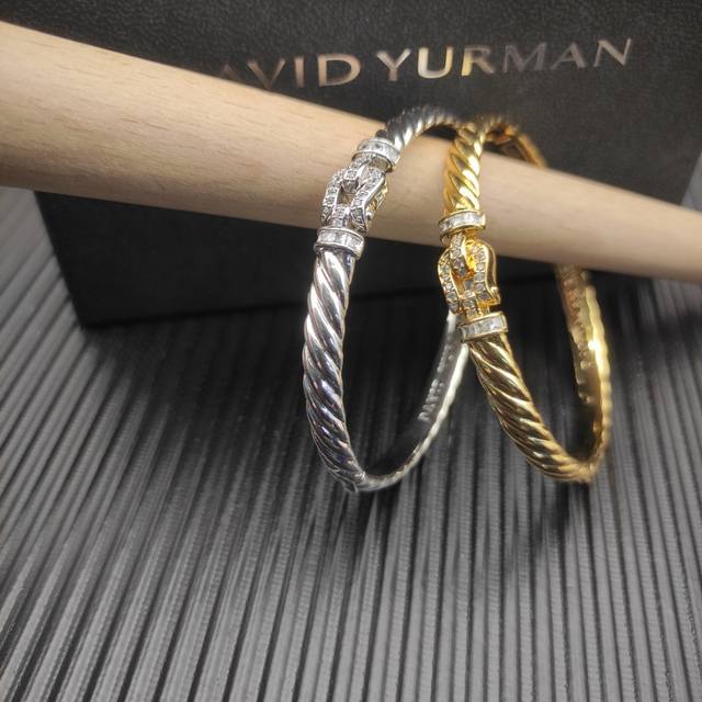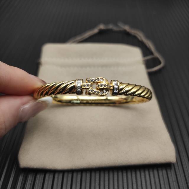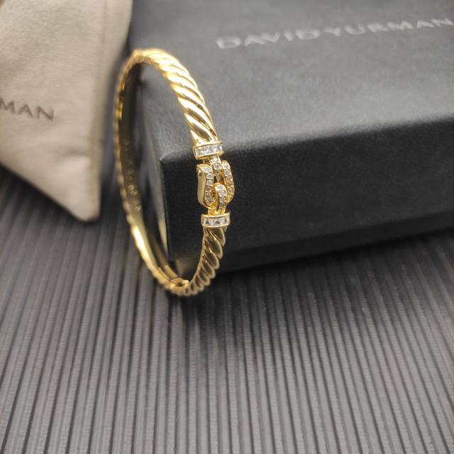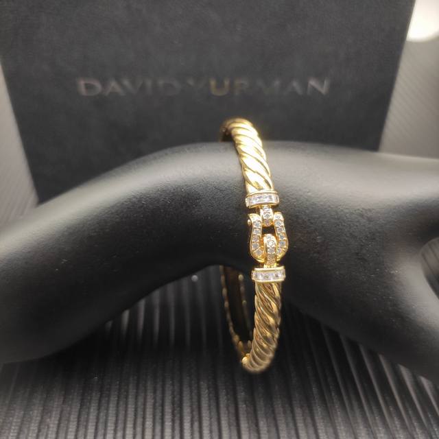 / David Yurman 6.2Mm金色镶钻钩扣雕刻波浪手镯 19Cm 。 编号 Dysz-362