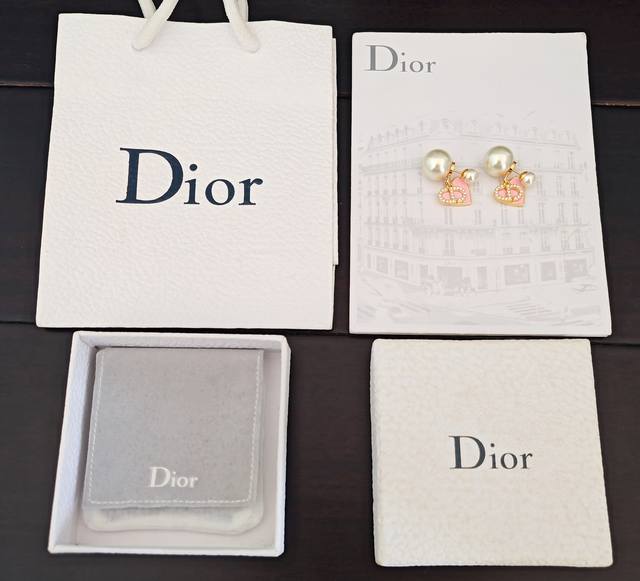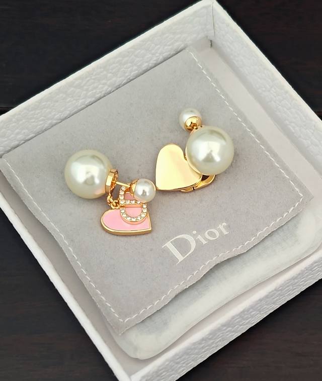 / D*Or 最新款大小珍珠粉色爱心耳环 一致Zp黄铜材质