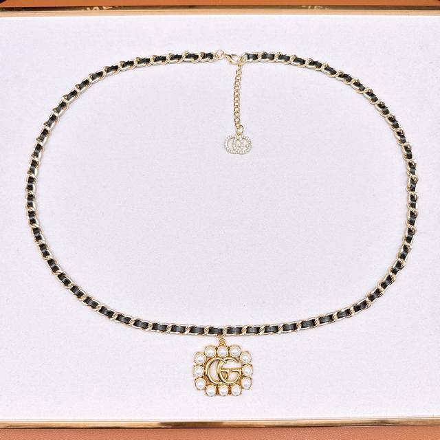 Gg珍珠水钻镶嵌编织链条项链