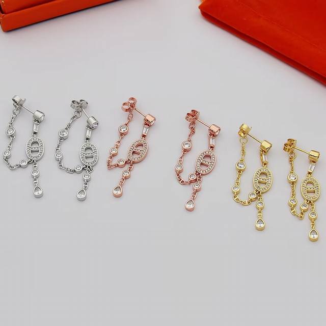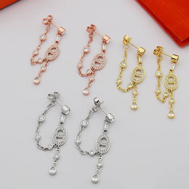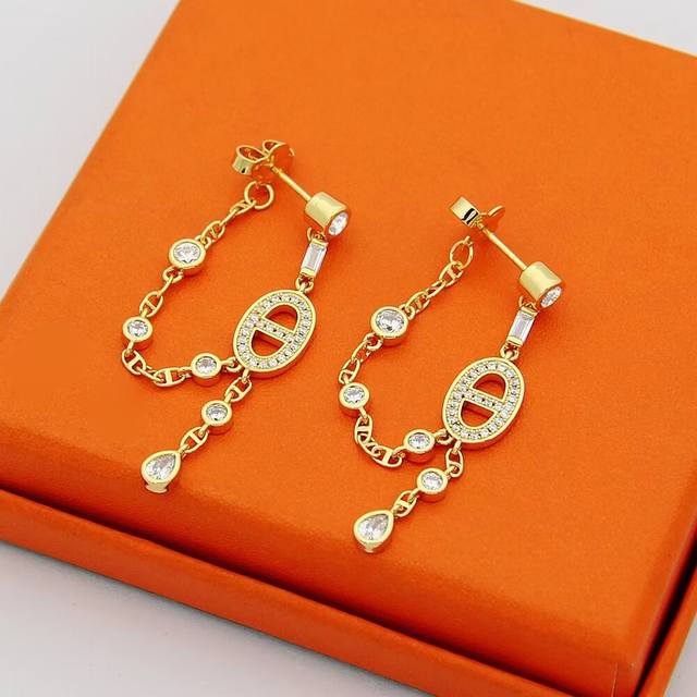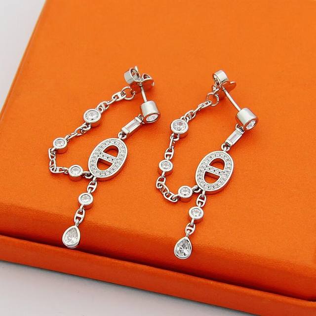 H猪鼻子耳钉满钻流苏耳钉